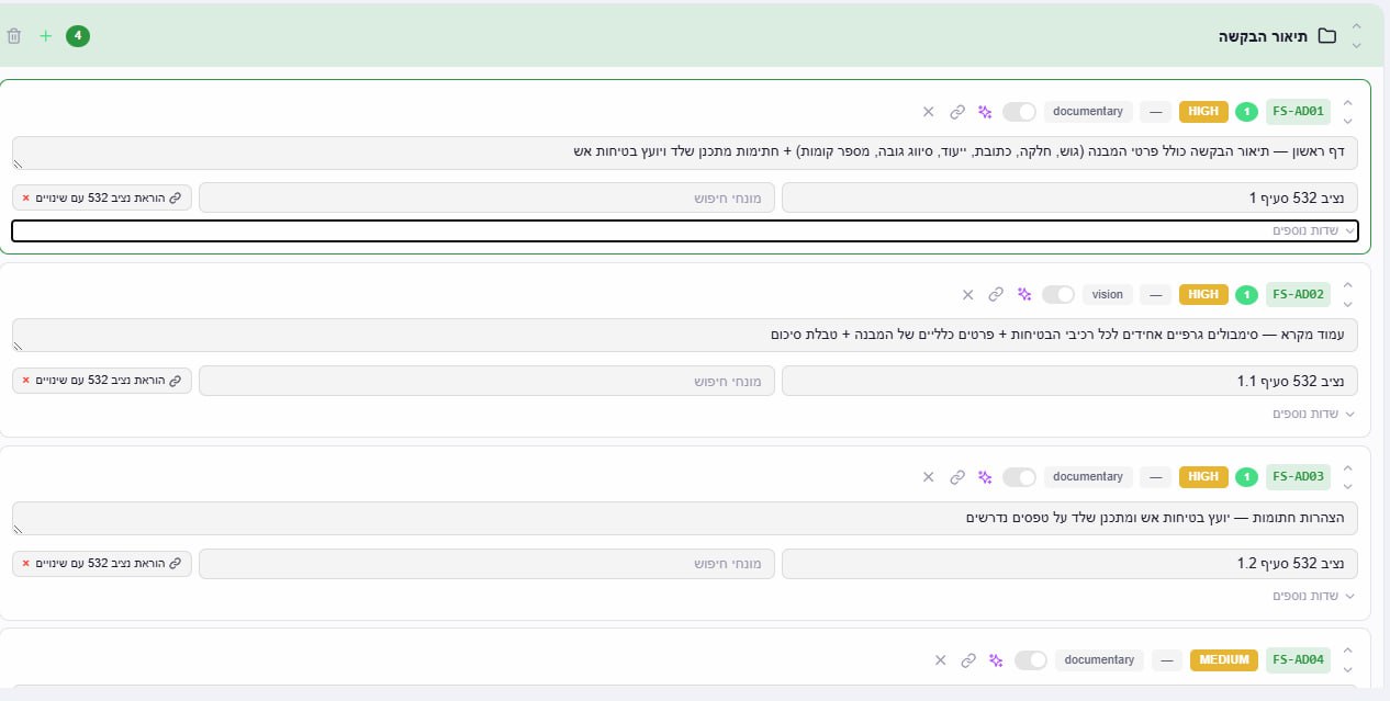 כל ארגון מגדיר את הסטנדרטים שלו. מכון בקרה, משרד הנדסה, רשות מקומית. אותה פלטפורמה, כללים ייחודיים.