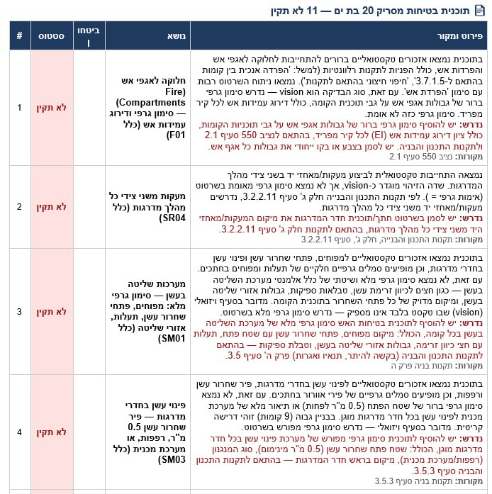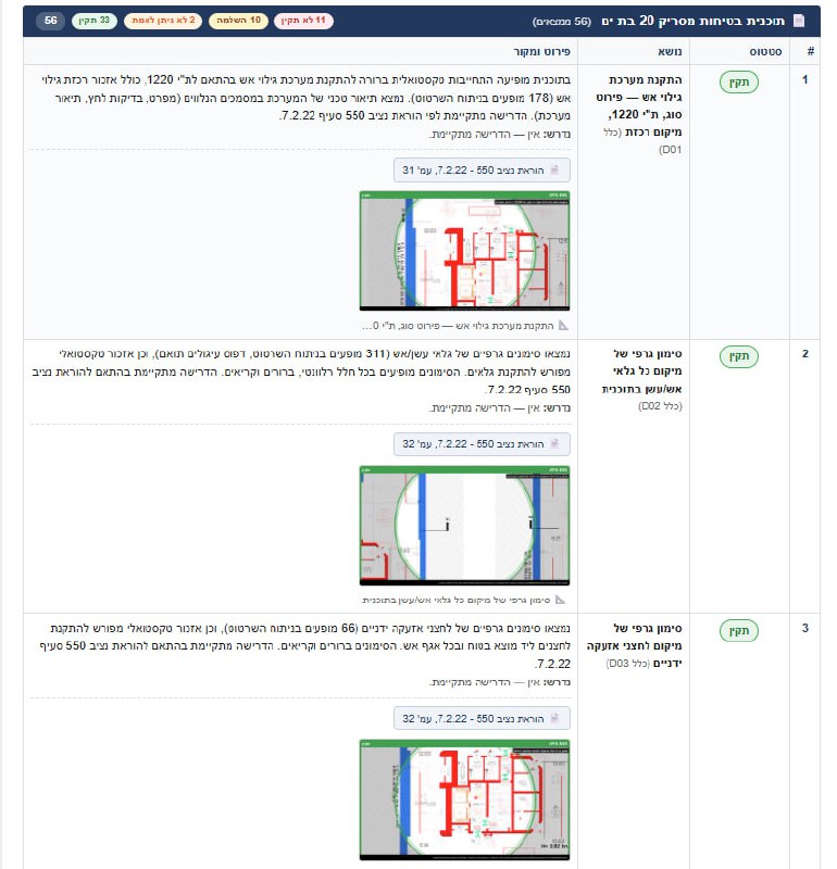כל סעיף בדיקה מפנה ישירות לתקנה, להנחיית נציב או לתקן: עמוד, סעיף, מקטע. המקור זמין מיד.